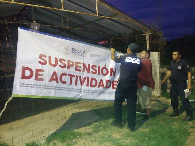 Rapidamente se dio parte a Desarrollo Urbano Municipal quien envió rapido a dos inspectores para atende el caso, pero cuando llegaron ya no había nadie y se fueron, más tarde fueron regresados para poner un sello oficial en lona y elaborar una acta de inspección que fue dejada en alambre perimetral de la capilla porque no habia nadie