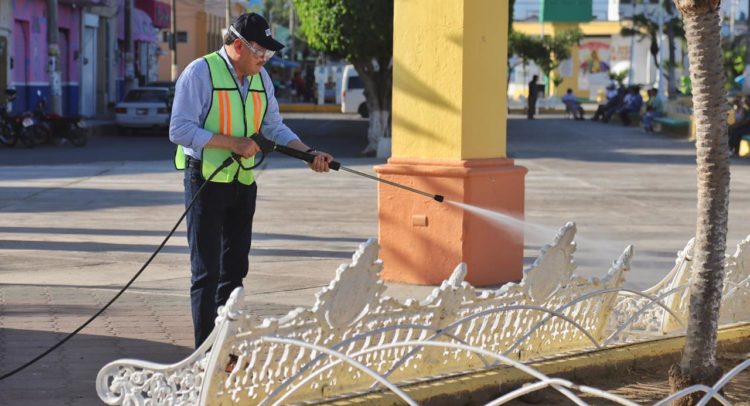 «Bancas, pasamanos, barandales, casetas de teléfonos públicos, en las paradas de transporte público y en todo lugar donde pudiera haber contacto físico, donde pudiera quedar depositado por cualquier persona portadora, este virus. Se están realizando estas labores de saneamiento las cuales seguirán adelante en todas las plazas públicas de nuestro municipio», explicó, por lo cual se realizan rutas nocturnas de 12 de la noche a 3 de la madrugada, ida y vuelta, en Valle, San José, San Juan, de nuevo San José y Mezcales.