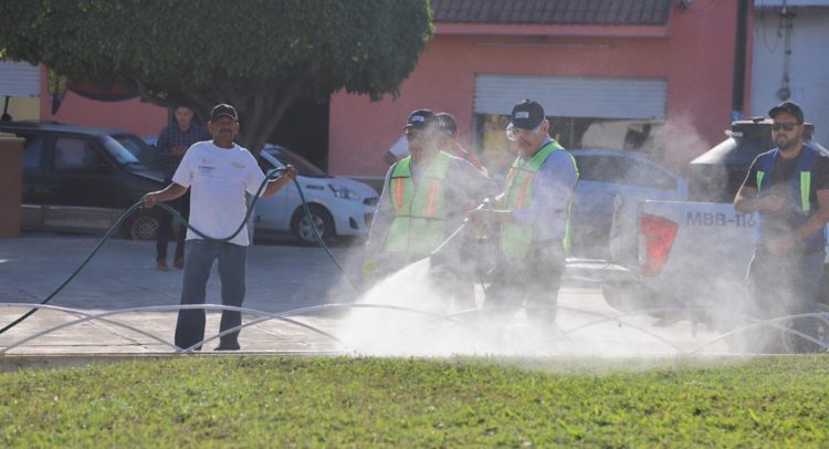 Este fin de semana, el doctor Jaime Cuevas Tello, presidente municipal de Bahía de Banderas, encabezó las acciones de saneamiento en zonas públicas como son plazas, equipamiento urbano y paradas de transporte público.