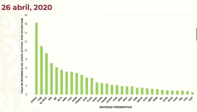 En el último informe proporcionado por el gobierno federal el día de hoy domingo 26 de abril, ambos estados están entre las más bajas incidencias de enfermos a nivel nacional, con dos enfermos por cada cien mil habitantes para Nayarit y, un enfermo por cada cien mil habitantes para Jalisco.