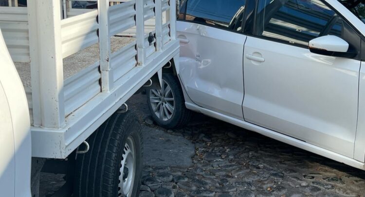 Justo al abrir la puerta y bajar el pie, una camioneta que iba de reversa impactó al coche y le aplasto el pie a la usuaria que resultó con golpes leves