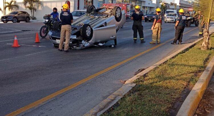Aparatoso accidente ocurrió sobre la carretera federal 200 en el ingreso norte a Puerto Vallarta justo a la altura de la entrada a Boca de Tomates donde un coche quedó volcado luego de que, según versiones, el conductor se quedó dormido y chocó contra otra camioneta.