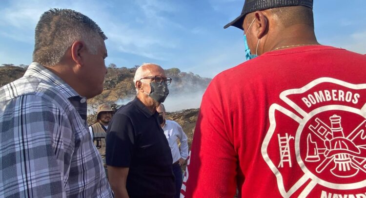 Con el propósito de atender de manera inmediata el incendio registrado en el basurero del municipio de Jala, el gobernador del estado de Nayarit, Miguel Ángel Navarro Quintero, acudió este domingo al sitio para supervisar los trabajos de contención y fortalecer la coordinación entre los tres órdenes de gobierno. El mandatario aseguró que buscarán garantizar que no se escatimen recursos ni esfuerzos para sofocar el siniestro en el menor tiempo posible, priorizando la salud de la población y el cuidado del entorno natural.