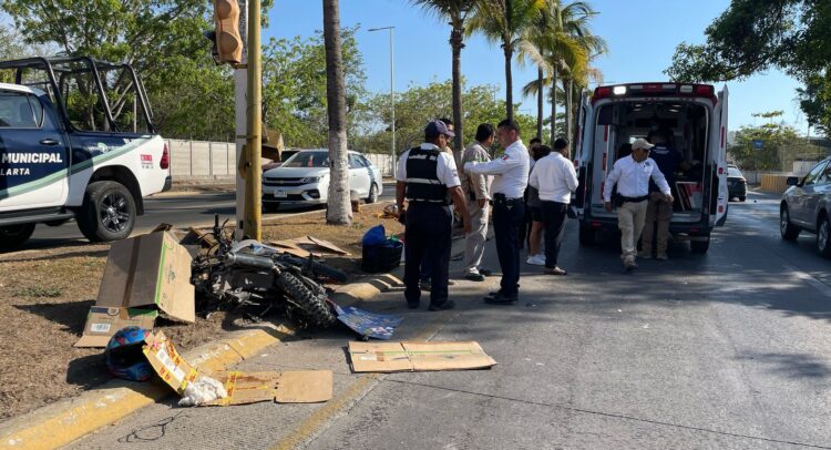 Ocurrió en la entrada a El Pitillal y el motociclista resultó con varios golpes en su cuerpo
