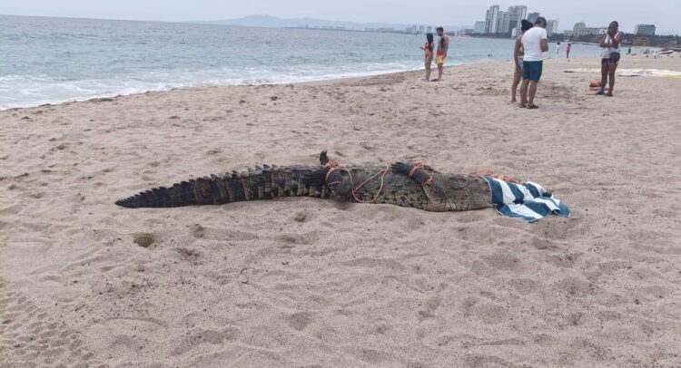 Gracias al oportuno reporte y la pronta respuesta de las autoridades se logró la captura de un cocodrilo de casi 4 metros de largo en la playa Flamingos.