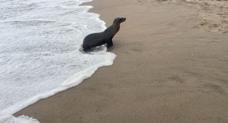 Hace unos minutos un lobo marino salió a la playa de Olas Altas cerca del restaurante “sillas azules”.