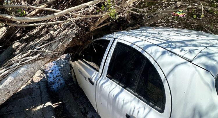 Luego de asegurarse que no había heridos, oficiales solicitaron el apoyo de bomberos para que desbarataran el árbol y así poder liberar el vehículo toda vez que el propietario solicitaría el apoyo de su seguro vehicular para que cubriera los daños.