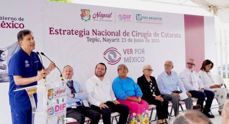 Este lunes, el gobernador del estado, Miguel Ángel Navarro Quintero, acompañado de su esposa, la doctora Beatriz Estrada Martínez, presidenta del Sistema DIF Nayarit, encabezó el arranque oficial de la Estrategia Nacional de Cirugía de Catarata «Ver por México».