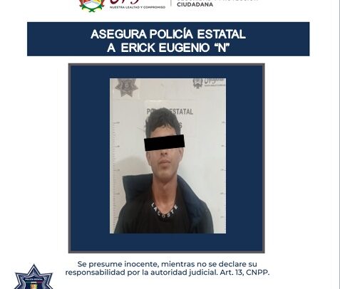 La detención se realizó en atención a un reporte de emergencia que alertaba sobre un asalto en curso. De forma inmediata, los elementos estatales activaron un operativo de búsqueda y localización, logrando ubicar y asegurar al presunto responsable, quien fue identificado como Erick Eugenio “N”, de 24 años de edad.