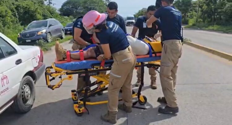 Fuerte choque ocurrió la tarde de este miércoles sobre la carretera estatal 544 metros antes de llegar al crucero del CUC donde participaron un camión de los conocidos como volteo y un motociclista llevándose la peor parte el conductor de la motocicleta.