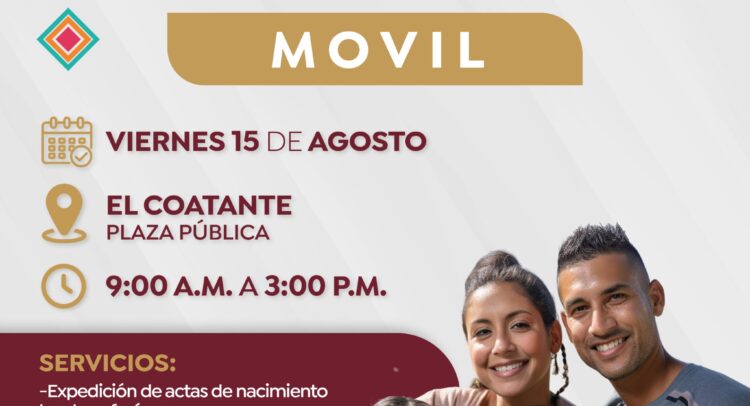 El próximo viernes 15 de agosto, la comunidad de El Coatante contará con la visita del programa Registro Civil Móvil, una iniciativa que busca acercar los servicios de esta dependencia a las localidades del municipio, facilitando la realización de trámites de forma rápida y accesible.