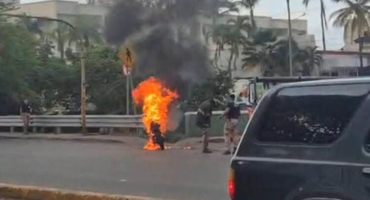 La tarde de este martes ardió en llamas una motocicleta sobre el libramiento Luis Donaldo Colosio justo frente a las instalaciones del Servicio Médico Forense.