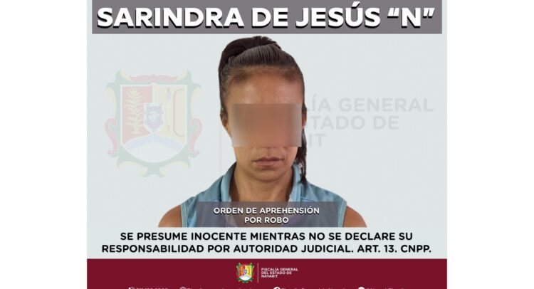 Elementos de la Agencia de Investigación Criminal de Nayarit cumplimentaron una orden de aprehensión en la capital nayarita contra Sarindra de Jesús “N”, por su probable participación en hechos que la ley tipifica como delito de robo, cometido en agravio de la empresa Casa Ley, S. A. P. I. de C. V.