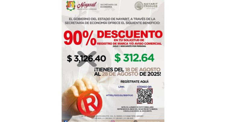 🔴 | La Secretaría de Economía pone a tu disposición el registro de tu marca y/o aviso comercial con el gran descuento del 90%, de $3,126.40 sólo pagarás $312.64.