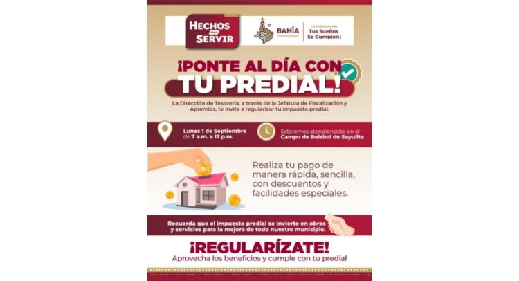 ¡No te quedes atrás! Aprovecha esta oportunidad para regularizar tu impuesto predial y contribuye al crecimiento y desarrollo de Bahía De Banderas.
