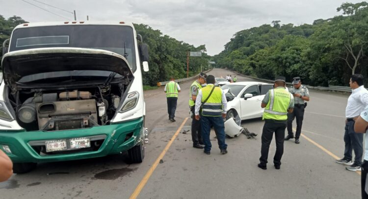 Serios daños materiales fue el resultado de un fuerte accidente ocurrido la mañana de este lunes en la carretera federal 200 a la altura del crucero de Sayulita donde se vieron involucrados un camión de pasajeros de la empresa Compostela y un vehículo particular.
