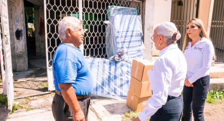 Literas, colchones, cobijas y despensas para familias damnificadas por las lluvias.
