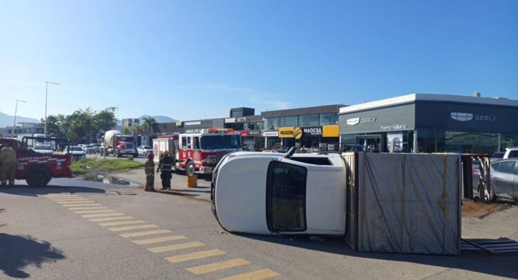 Debido a las obras y El Fuerte tráfico, muchos automovilistas que vienen de Bahía de Banderas ingresan por el área de locales y toman una brecha que está junto a las oficinas de la Guardia Nacional, todo indica que el conductor de esta camioneta hizo lo mismo, pero al intentar cruzar la carretera fue impactado en un costado por el vehículo y el fuerte choque ocasionó que terminará volcado.