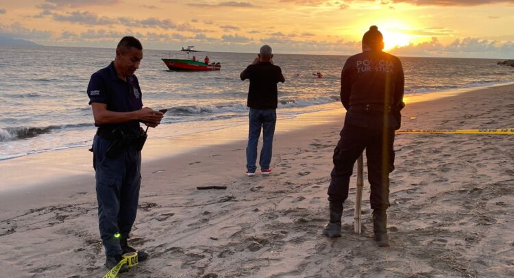 El cuerpo fue asegurado con una cuerda para evitar que el mar lo jalara y de esa manera poderlo sacar a la playa de Boca Negra en Marina Vallarta.