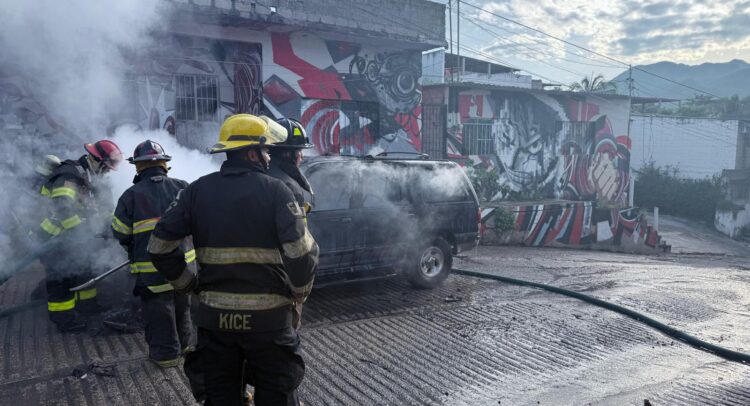 Bomberos de inmediato comenzaron trabajos y apagaron el fuego e informaron que la camioneta fue pérdida total.