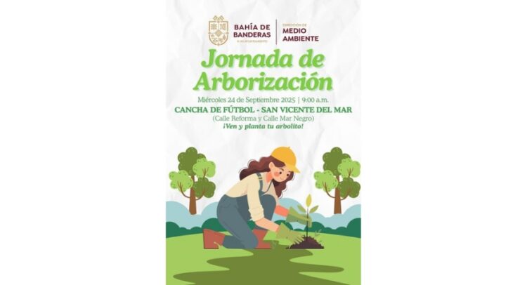 El H.XII Ayuntamiento de Bahía de Banderas, a través de la Dirección de Medio Ambiente, invita a la comunidad a participar en una jornada más de Arborización.