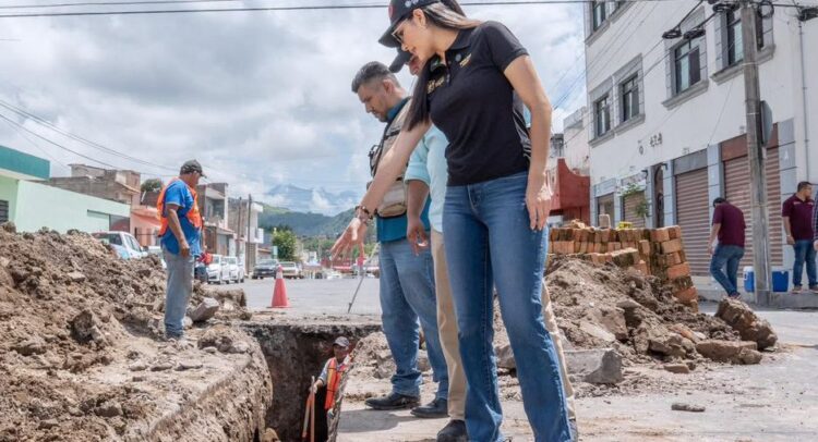 Tepic.- La presidenta municipal de Tepic, Ing. Geraldine Ponce, supervisó los trabajos de rehabilitación del drenaje sanitario en la calle Tenochtitlán, en la colonia Mololoa, como parte de las 60 acciones de infraestructura anunciadas recientemente para el municipio y la ciudad.
