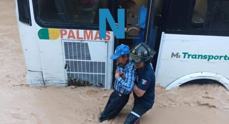 La tarde de este lunes varias personas que viajaban abordo de un camión urbano vivieron minutos de terror luego de que el conductor al intentar pasar una creciente en el poblado de El Colorado quedó atorado y la corriente de agua estuvo apunto de arrastrar dicha unidad.