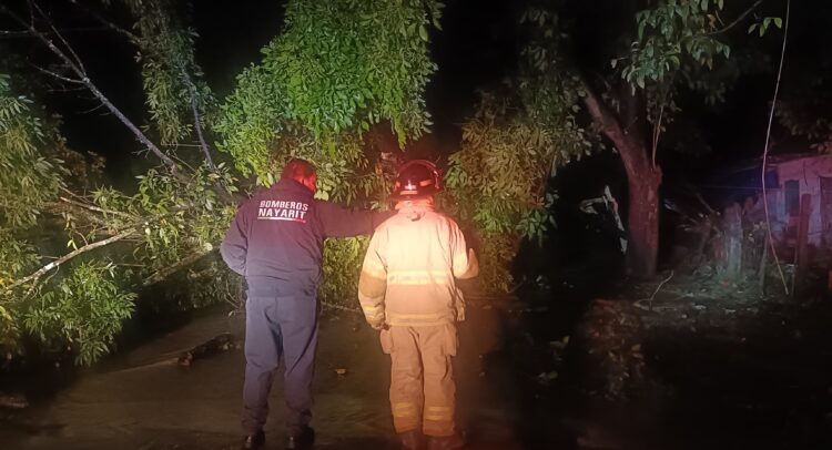 Las lluvias fuertes registradas la noche de este jueves en Tepic ocasionaron la caída de árboles y daños en cables eléctricos, lo que obligó a la intervención del Heroico Cuerpo de Bomberos de Nayarit.