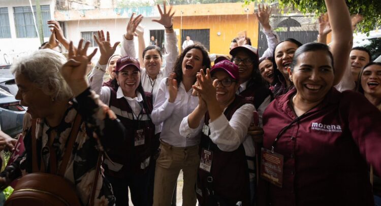 Por las calles de la colonia Morelos en el municipio de Tepic, caminaron juntas la presidenta nacional de Morena, Luisa María Alcalde Luján, y Elizabeth López Blanco, enlace estatal de la campaña de afiliación y credencialización “Somos Millones”.