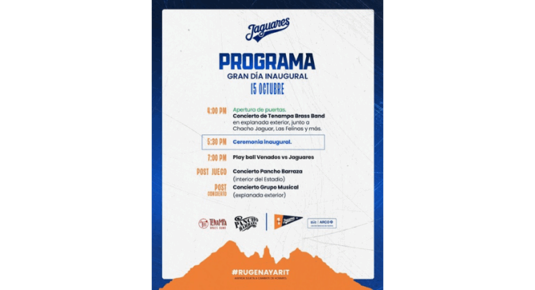 Las puertas del Coloso del Pacífico abrirán desde las 4:00 p.m., para que los asistentes vivan desde temprano la emoción del arranque de temporada. La ceremonia inaugural dará inicio a las 5:30 p.m., antes de que suene el playball a las 7:00 p.m.