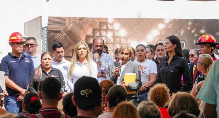 Por instrucciones del gobernador del estado, doctor Miguel Ángel Navarro Quintero, la secretaria general de Gobierno, Rocío Esther González García, acudió este jueves junto a la secretaria de Infraestructura, Claudia Raquela Araujo, y la directora del Fondo de Fomento Industrial de Nayarit (FONAY), Patricia Salazar Briseño, para dialogar con las y los locatarios del Mercado Juan Escutia, quienes resultaron afectados por el incendio registrado al interior del inmueble.