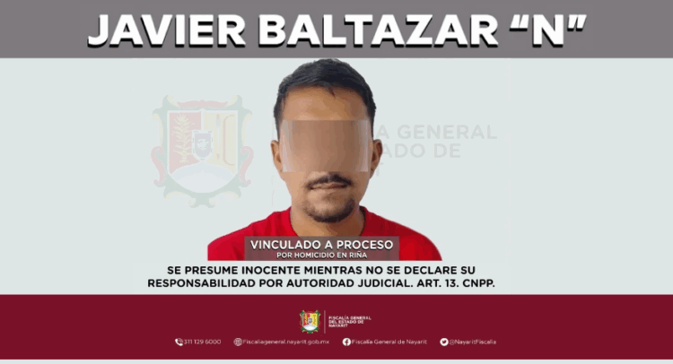 Tepic, Nayarit; 16 de octubre de 2025.– La Fiscalía General del Estado informó que un Juez de Control vinculó a proceso a Javier Baltazar “N”, por su presunta participación en el delito de homicidio en riña, ocurrido el pasado 24 de septiembre en la localidad Emiliano Zapata (Majadas), municipio de Xalisco.