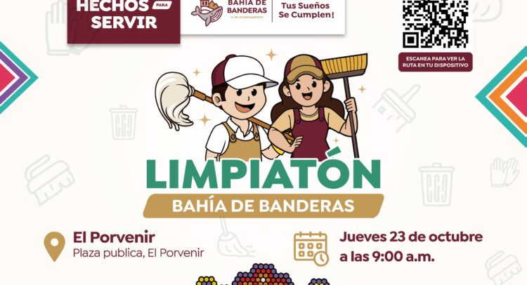 Este jueves 23 de octubre, una nueva Jornada del “Limpiatón” llegará a la plaza pública de El Porvenir, donde vecinos y personal del H. XII Ayuntamiento de Bahía de Banderas unirán esfuerzos en esta jornada de limpieza, descacharrización y abatización.