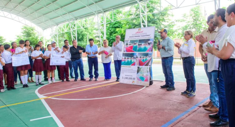 Durante su gira de trabajo, el mandatario estatal visitó la Escuela Primaria “Cuauhtémoc” de la comunidad San Felipe Aztatán, donde se realizaron obras que fortalecen la formación integral de las y los estudiantes. Entre ellas, la construcción de un domo escolar, la remodelación de la cancha de usos múltiples y la edificación de un canalón para desagüe pluvial, con el propósito de ofrecer espacios seguros y funcionales para actividades deportivas, cívicas y recreativas.