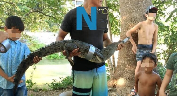 Este fin de semana vecinos de la colonia Emiliano Zapata capturaron un cocodrilo de poco más de metro y medio de largo que nadaba en el Río Cuale.