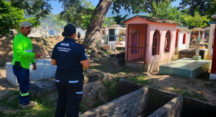 De manera preventiva, elementos de Protección Civil y Bomberos realizan recorridos por los panteones del municipio, con el objetivo de garantizar la seguridad de quienes acudirán a visitar a sus seres queridos este próximo 2 de noviembre.