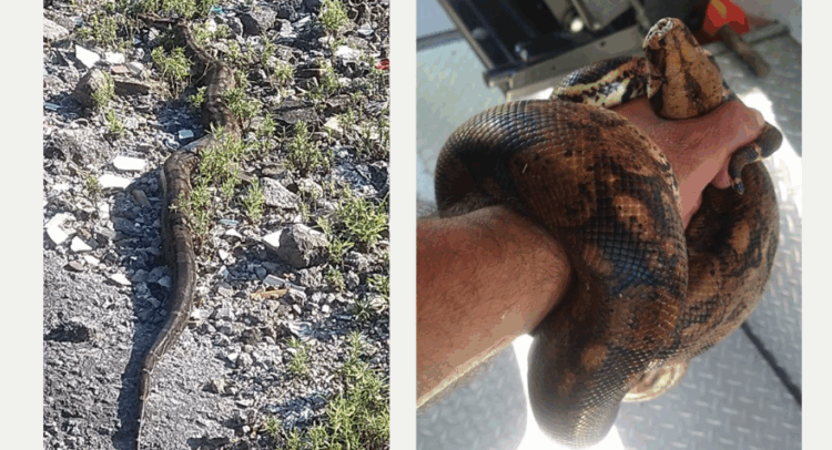 Al llegar al lugar, los elementos localizaron una boa constrictora y procedieron a asegurarla cuidadosamente para evitar cualquier daño tanto al ejemplar como a las personas. Posteriormente, fue revisada por el personal, confirmando que no presentaba lesiones.
