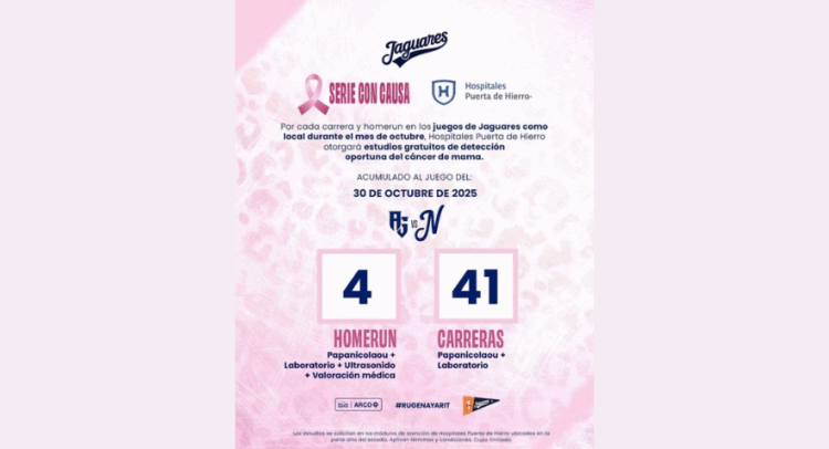 Durante los juegos en casa, la ofensiva felina acumuló 4 cuadrangulares y 41 carreras, activando así estudios gratuitos de Papanicolau, laboratorio, ultrasonido y valoración médica para la comunidad nayarita.