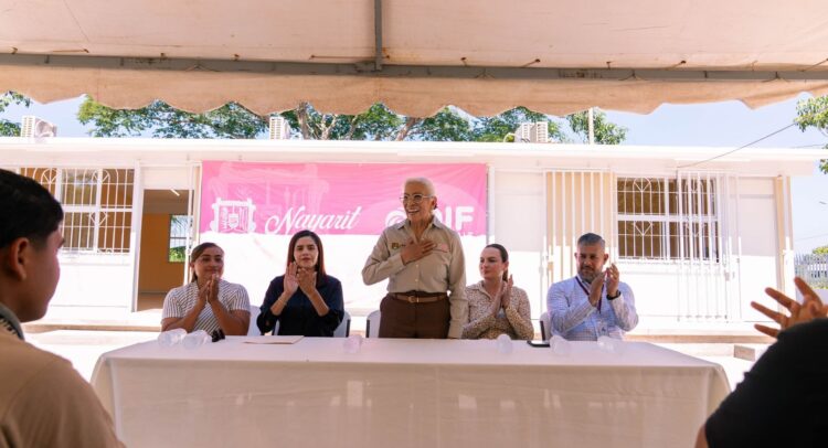 Tecuala, Nayarit; 5 de noviembre de 2025.– Hace unos meses, madres y padres de familia solicitaron a la presidenta del Sistema DIF Nayarit, doctora Beatriz Estrada Martínez, su intervención para dignificar la Telesecundaria Valeriano Sandoval Castañeda, en la localidad de Río Viejo, municipio de Tecuala. Hoy, con el respaldo de su esposo, el gobernador Miguel Ángel Navarro Quintero, esa petición se convirtió en realidad: se remodelaron tres aulas, la dirección, la bodega y se construyó el bardeado perimetral del plantel.