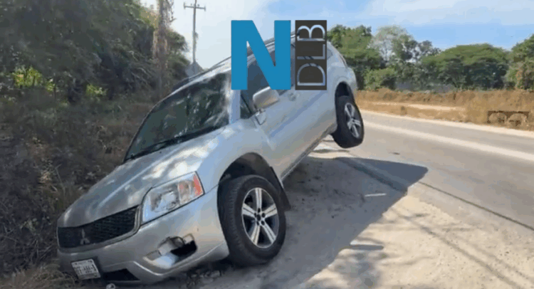 Una vez en el lugar oficiales confirmaron que se trataba de una camioneta de la marca Mitsubishi, color gris, con placas del estado de Nayarit, la cual no estaba volcada, pero sí con más de media carrocería dentro de la zanja.