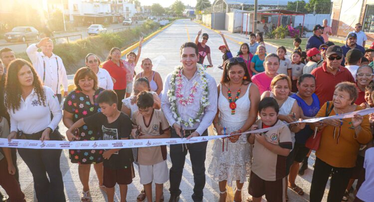 Durante su mensaje, el alcalde Héctor Santana destacó que esta vialidad, antes de terracería y afectada durante las lluvias, hoy se convierte en una de las avenidas más modernas y funcionales de la comunidad.