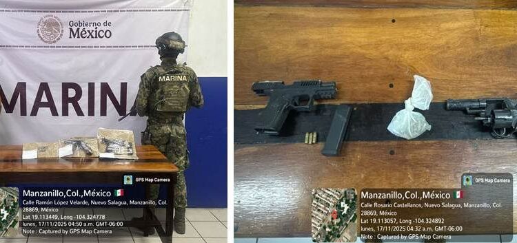 Manzanillo, Col.- La Secretaría de Marina, a través de la Armada de México, por conducto de la Sexta Región Naval, informa que, como resultado de los recorridos de vigilancia implementados en el marco de la Estrategia de Seguridad “Pez Vela 2025”, en días recientes personal naval, en coordinación con la Fiscalía General de la República (FGR), la Secretaría de Seguridad Pública del Estado de Colima (SSP) y la Dirección de Seguridad Pública (DSP) de Manzanillo, logró la detención de 54 presuntos infractores de la ley, así como el aseguramiento de armamento, cartuchos, vehículos, inmuebles y presunta droga, en diversos municipios del estado.