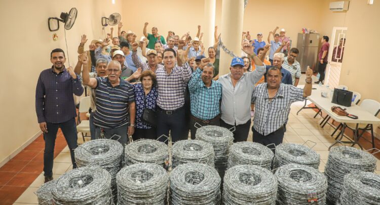 Con el propósito de impulsar las actividades del campo y brindar herramientas que fortalezcan la productividad de las familias ejidales, el presidente municipal Héctor Santana encabezó la entrega de rollos de alambre en los ejidos de El Porvenir y San José del Valle, beneficiando así a productores que dependen del trabajo agrícola y ganadero para el sustento de sus hogares.