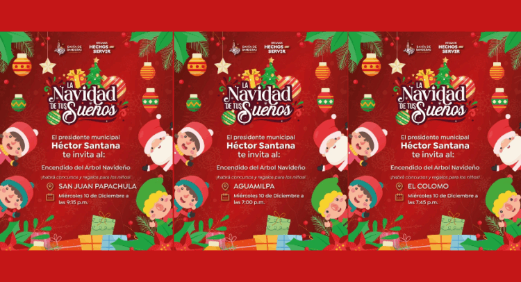 El Gobierno Municipal de Bahía de Banderas, que encabeza el presidente municipal Héctor Santana, anuncia el inicio del tercer día de actividades del programa “La Navidad de tus Sueños”, una iniciativa que busca llevar alegría, unión comunitaria y ambiente festivo a cada rincón del municipio mediante el tradicional encendido de árboles navideños.