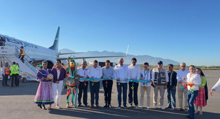 Tepic, Nayarit, 13 de diciembre de 2025.–Este sábado se consolidó un momento histórico para la conectividad aérea de Nayarit con la llegada del vuelo directo Calgary–Tepic/Riviera Nayarit, operado por la aerolínea canadiense WestJet, lo que reafirma el posicionamiento de la entidad como un destino turístico y de inversión de proyección internacional.