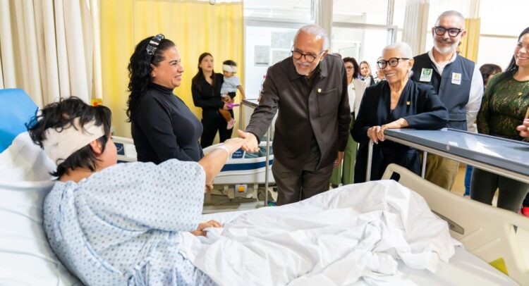 Con empatía y compromiso social, la presidenta del Sistema DIF Nayarit, doctora Beatriz Estrada Martínez, y su esposo, el gobernador del estado, Miguel Ángel Navarro Quintero, visitaron a pacientes beneficiarios de cirugías bariátricas e implantes cocleares y osteointegrados que se encuentran en etapa de recuperación en el Hospital IMSS-Bienestar Tepic, donde se realizaron un total de 24 intervenciones quirúrgicas orientadas a mejorar su calidad de vida y fortalecer su bienestar integral.