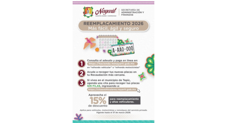 📅 Si vives en Tepic, agenda tu cita SIN FILAS para recoger tus placas en: