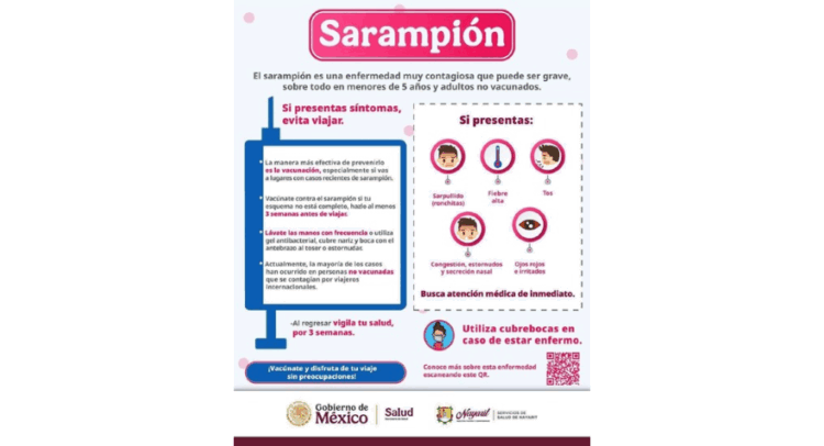 ⚠️ Ante síntomas como fiebre, sarpullido, tos, congestión u ojos rojos, evita viajar y acude de inmediato a tu unidad de salud.