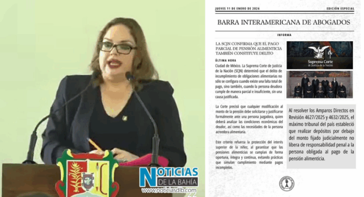 Bahía de Banderas, Nayarit. – La Suprema Corte de Justicia de la Nación (SCJN) resolvió que el delito de incumplimiento de obligaciones alimentarias no sólo se configura cuando existe una falta total de pago, sino también cuando la persona obligada deposita montos parciales o insuficientes, sin una causa legalmente justificada.