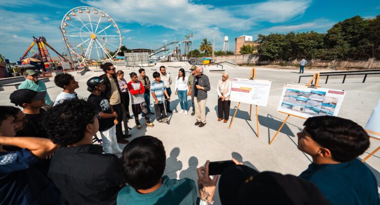 El gobernador, Miguel Ángel Navarro Quintero, acompañado de su esposa, la doctora Beatriz Estrada Martínez, presidenta del Sistema DIF Nayarit, realizó un recorrido por el área destinada al skateboarding en el Recinto Ferial de Tepic, un proyecto diseñado con la participación de jóvenes nayaritas. Esta obra se encuentra en su etapa final y próximamente quedará concluida con la instalación de luminarias y los últimos detalles en los servicios sanitarios.